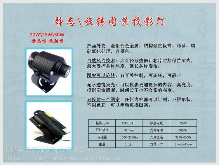 商铺广告灯 旋转防水户外图案投影灯 LOGO广告射灯 单双色灯光片定制